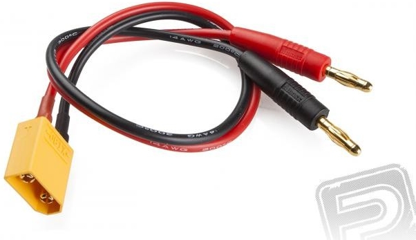 nabíjecí kabel osazen banánky 4mm a konektorem samec XT-90 v délce kabelu 30cm o průřezu 2.5mm.