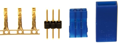 Vysoce kvalitní servokonektor (protikus) JR se zlacenými kontakty, plastový "domeček" v modré barvě. Přechodový odpor 3,1 mOhm, proudové zatížení 3A/24h, 5A/2min,8A impulsní. Pro kabel max. 0,5 mm2. Balení 25 ks. Vyrobeno v Německu.